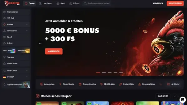 Willkommen im RoosterBet Casino, einem modernen Online-Casino für Spieler, die Auswahl, klare Bedingungen und einfache Navigation wünschen. Wir sind 2023 unter Novatrix SRL gestartet, und unser Fokus liegt darauf, wichtige Informationen leicht auffindbar zu machen, bevor du einzahlst. Im RoosterBet Casino Deutschland unterstützen wir EUR-Zahlungen, beliebte E-Wallets und Krypto-Optionen sowie eine große Spielelobby mit Slots, Live-Tischen, Jackpots und Sportwetten. Viele Spieler erwähnen unsere große Auswahl in RoosterBet Bewertungen, während einige auch darauf hinweisen, dass der RTP nicht öffentlich geprüft wird – daher empfehlen wir immer, die Hilfedatei jedes Spiels auf dessen RTP zu prüfen.